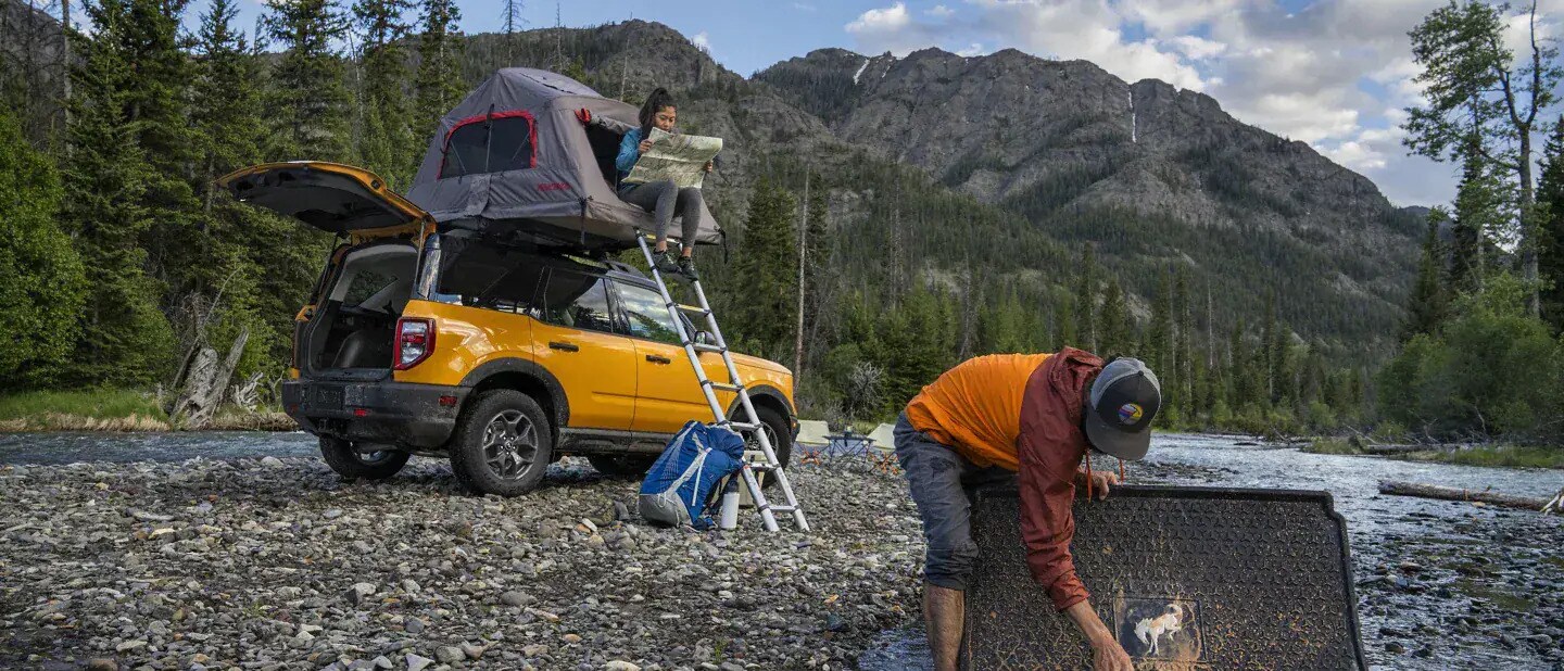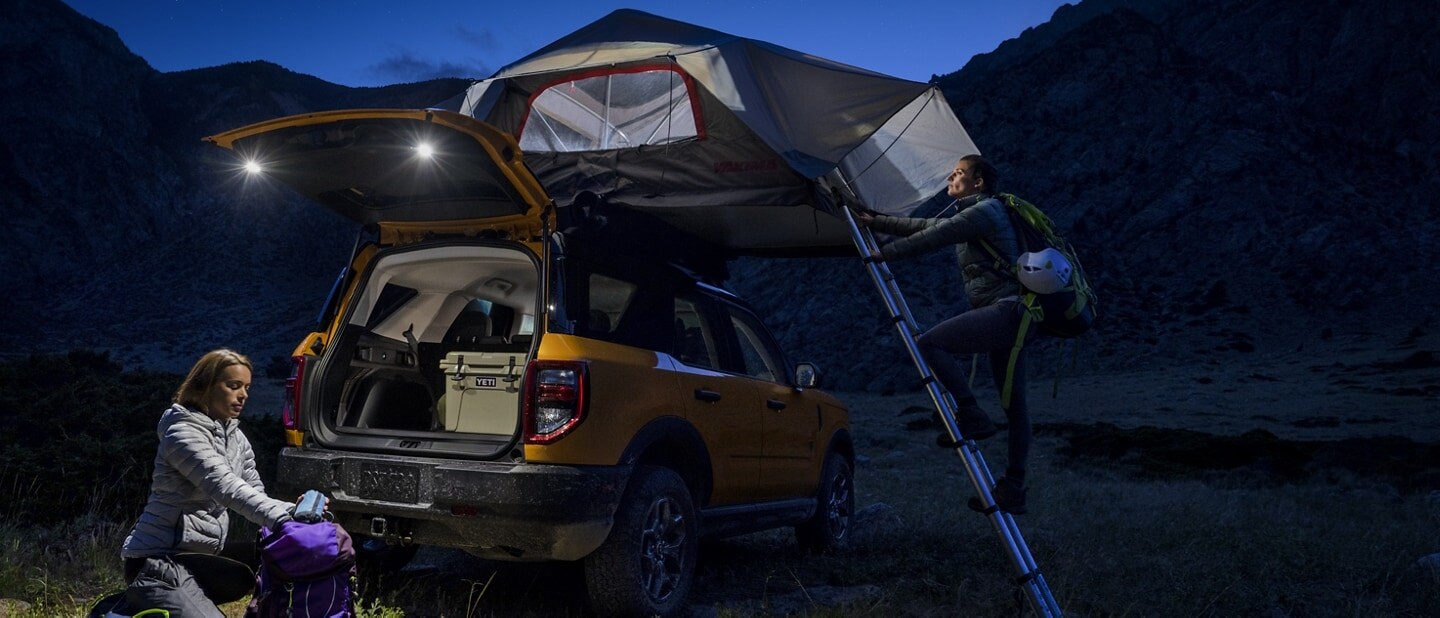 On the move, the Bronco™ Sport roof-rack structure can handle up to a 150-lb. dynamic load and a 600-lb. static load with the standard steel roof. In order to avoid damp ground or pesky critters, the high load capacity also gives you the ability to elevate your campsite.