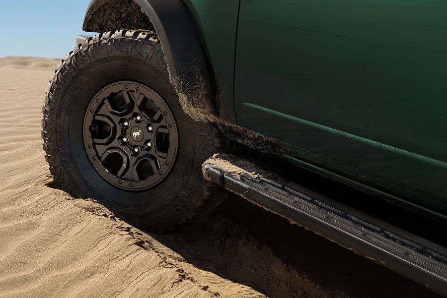 Standard with the Sasquatch™ Package, these 35-inch tires provide additional traction and allow the Ford Bronco to achieve a max ground clearance of 11.6 inches on the 2-door and 11.5 inches on the 4-door.