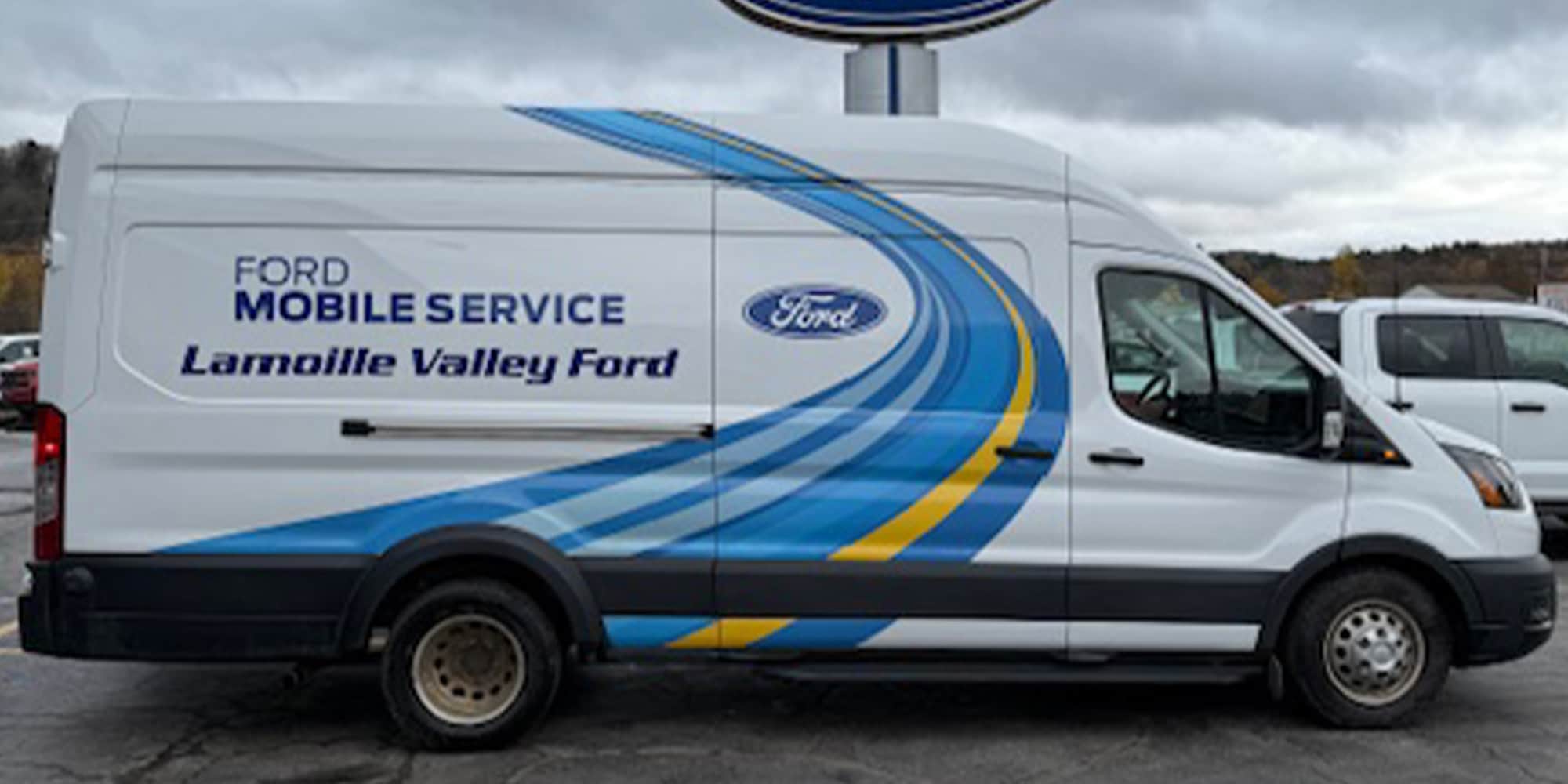 At Lamoille Valley Ford Inc., our technicians can perform a lot of the same services remotely that we do in the dealership, such as oil and filter changes, brake services, batteries, tire rotations, recalls and more. Please contact us for details as service may vary.