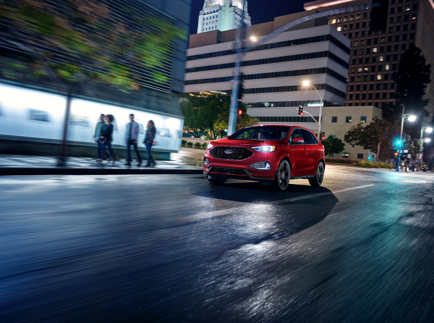 The 2024 Ford Edge offers two powerful turbocharged EcoBoost engine options. The standard two-liter four-cylinder Twin Scroll turbocharged engine generates 250 horsepower and 280 pound-feet of torque, providing brisk acceleration and passing power. It comes paired with an eight-speed SelectShift automatic transmission with Active Transmission Warm-Up for smooth, quick shifts. For even stronger performance, the available 2.7-liter twin-turbocharged V6 produces 335 horsepower and a stout 380 pound-feet of torque. This muscular twin-turbo engine helps the Edge ST sprint from zero-60 mph in just 5.8 seconds, according to Ford. It comes matched to a seven-speed automatic transmission with steering wheel-mounted paddle shifters. Both engines optimize fuel efficiency while delivering robust acceleration.