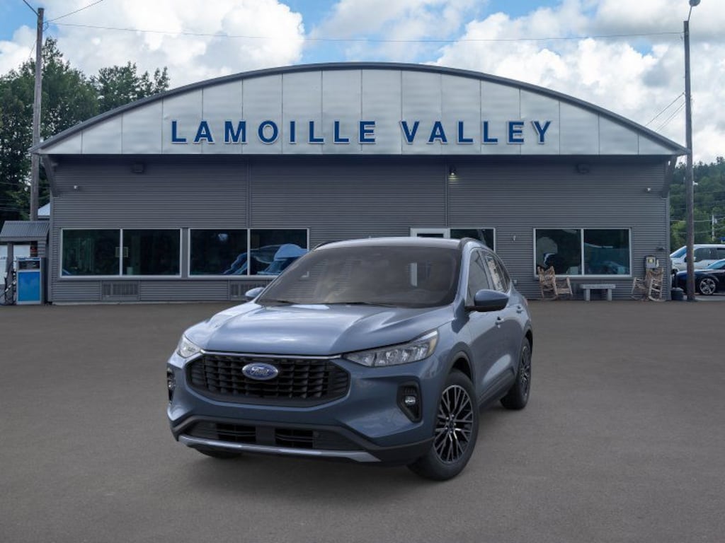 Lamoille Valley Ford is proud to present you with another True Market Priced Vehicle. This 2025 Ford Escape Plug-In Hybrid is loaded with the following Factory Options: 2.5L iVCT Class II Trailer Tow Package, Equipment Group 700A, 2.5L iVCT, 2.91 Axle Ratio, 4-Wheel Disc Brakes, 6 Speakers, ABS brakes, Air Conditioning, Alloy wheels, AM/FM radio: SiriusXM, AM/FM Stereo, Auto High-beam Headlights, Automatic temperature control, Black Roof-Rack Side Rails, Brake assist, Bumpers: body-color, Compass, Delay-off headlights, Driver door bin, Driver vanity mirror, Dual front impact airbags, Dual front side impact airbags, Electronic Stability Control, Emergency communication system: SYNC 4 911 Assist, FordPass Connect, Four wheel independent suspension, Front & Rear Floor Liners w/o Carpet Mats, Front anti-roll bar, Front Bucket Seats, Front Center Armrest, Front dual zone A/C, Front fog lights, Front License Plate Bracket, Front reading lights, Fully automatic headlights, Heated door mirrors, Heated front seats, Heated steering wheel, Heated Vinyl/Cloth Front Sport Contour Bucket Seats, Illuminated entry, Knee airbag, Low tire pressure warning, Navigation system: Connected Navigation, Occupant sensing airbag, Outside temperature display, Overhead airbag, Overhead console, Panic alarm, Panoramic Vista Roof, Passenger door bin, Passenger vanity mirror, Power door mirrors, Power driver seat, Power Liftgate, Power steering, Power windows, Radio data system, Rear anti-roll bar, Rear reading lights, Rear seat center armrest, Rear window defroster, Rear window wiper, Remote keyless entry, Speed control, Speed-sensing steering, Speed-Sensitive Wipers, Split folding rear seat, Spoiler, Steering wheel mounted audio controls, SYNC 4 w/Enhanced Voice Recognition, Telescoping steering wheel, Tilt steering wheel, Traction control, Trip computer, Variably intermittent wipers, and Wheels: 18" Machined-Face Magnetic Aluminum!!