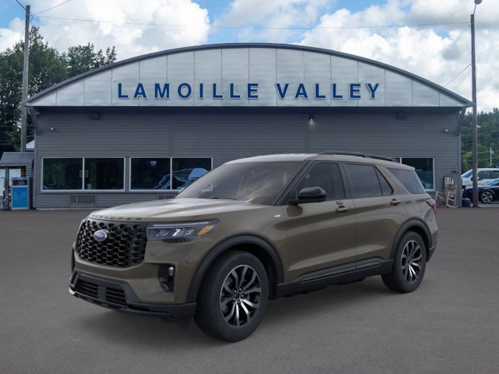 Lamoille Valley Ford is proud to present you with another True Market Priced Vehicle. This 2026 Ford Explorer ST-Line is loaded with the following Factory Options: 4WD Equipment Group 300A Standard Package (Heated Unique Cloth Captain's Chairs, Radio: B&O Sound System by Bang and Olufsen, and Wheels: 20" Ebony-Painted Machined Aluminum), 4WD, 10 Speakers, 2nd Row Captain's Chairs w/E-Z Entry and Armrest, 3rd row seats: bench, 4-Wheel Disc Brakes, ABS brakes, Air Conditioning, Alloy wheels, AM/FM radio: SiriusXM with 360L, Apple CarPlay/Android Auto, Auto High-beam Headlights, Automatic temperature control, BlueCruise (equipment + 1-Year + 90-Day Plan), BlueCruise Hardware, Brake assist, Bumpers: body-color, Compass, Delay-off headlights, Driver door bin, Driver vanity mirror, Dual front impact airbags, Dual front side impact airbags, Electronic Stability Control, Emergency communication system: 911 Assist, Exterior Parking Camera Rear, Four wheel independent suspension, Front anti-roll bar, Front Bucket Seats, Front Center Armrest, Front dual zone A/C, Front fog lights, Front License Plate Bracket, Front reading lights, Fully automatic headlights, Garage door transmitter, Heated door mirrors, Heated front seats, Heated steering wheel, Illuminated entry, Internet access capable: FordPass Connect 5G, Knee airbag, Leather steering wheel, Low tire pressure warning, Navigation System, Occupant sensing airbag, Outside temperature display, Overhead airbag, Overhead console, Panic alarm, Passenger door bin, Passenger vanity mirror, Power door mirrors, Power driver seat, Power Liftgate, Power passenger seat, Power steering, Power windows, Rear air conditioning, Rear anti-roll bar, Rear reading lights, Rear window defroster, Rear window wiper, Remote keyless entry, SecuriCode Keyless Entry Keypad, Security system, Speed control, Speed-sensing steering, Speed-Sensitive Wipers, Split folding rear seat, Spoiler, Steering wheel mounted audio controls, Tachometer, Telescoping steering wheel, Tilt steering wheel, Traction control, Trip computer, and Variably intermittent wipers!! 20/27 City/Highway MPG