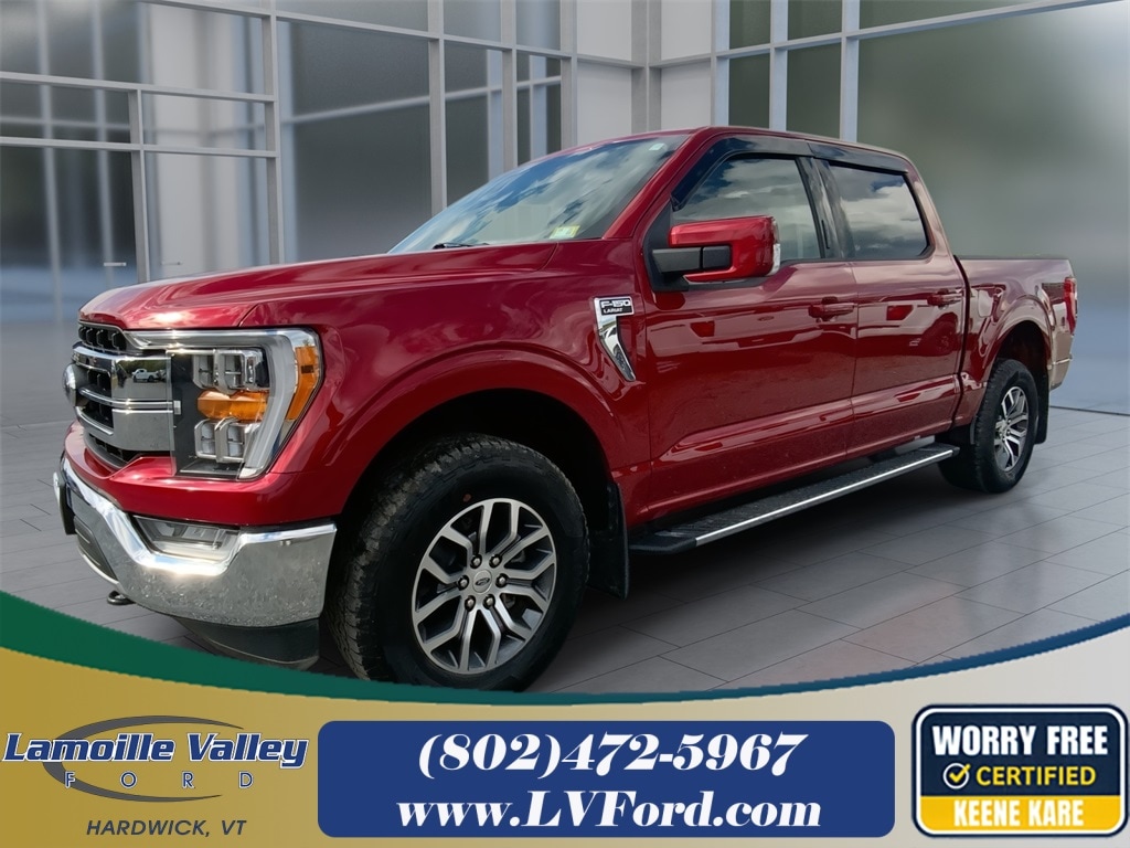 Lamoille Valley Ford is proud to present you with another True Market Priced Pre-Owned Vehicle. This 2022 Ford F-150 Lariat Ford Gold Certified is loaded with the following Factory Options: 4WD Bed Utility Package (BoxLink, LED Box Lighting, Power Tailgate, and Tailgate Step w/Tailgate Work Surface), Equipment Group 501A Mid (Onboard 400W Outlet, Radio: B&O Sound System by Bang & Olufsen, and Universal Garage Door Opener), GVWR: 6,600 lbs Payload Package, Trailer Tow Package (Class IV Trailer Hitch Receiver, Integrated Trailer Brake Controller, and Pro Trailer Backup Assist), Ford Gold Certified Certified, 4WD, 18" Machined-Aluminum Wheels, 3.55 Axle Ratio, 4-Wheel Disc Brakes, 7 Speakers, ABS brakes, Adjustable pedals, Air Conditioning, Alloy wheels, AM/FM radio: SiriusXM with 360L, Auto High-beam Headlights, Auto Start-Stop Removal, Auto-dimming door mirrors, Auto-dimming Rear-View mirror, Automatic temperature control, Brake assist, Bumpers: chrome, Compass, Connected Navigation & SiriusXM w/360L Removal, Delay-off headlights, Driver door bin, Driver vanity mirror, Dual front impact airbags, Dual front side impact airbags, Electronic Locking w/3.73 Axle Ratio, Electronic Stability Control, Emergency communication system: SYNC 4 911 Assist, Extended Range 36 Gallon Fuel Tank, Exterior Parking Camera Rear, Front anti-roll bar, Front Center Armrest w/Storage, Front dual zone A/C, Front fog lights, Front reading lights, Front wheel independent suspension, Fully automatic headlights, Heated door mirrors, Heated front seats, Illuminated entry, Leather-Trimmed 40/20/40 Front Seat, LED Sideview Mirror Spotlights, Low tire pressure warning, Memory seat, Navigation system: Connected Navigation, Occupant sensing airbag, Outside temperature display, Overhead airbag, Overhead console, Panic alarm, Passenger door bin, Passenger vanity mirror, Pedal memory, Power door mirrors, Power driver seat, Power passenger seat, Power steering, Power windows, Radio data system, Radio: AM/FM SiriusXM w/360L, Rear reading lights, Rear seat center armrest, Rear step bumper, Rear window defroster, Remote keyless entry, Security system, Speed control, Speed-sensing steering, Split folding rear seat, Steering wheel mounted audio controls, SYNC 4 w/Enhanced Voice Recognition, Tachometer, Telescoping steering wheel, Tilt steering wheel, Traction control, Trip computer, Turn signal indicator mirrors, Variably intermittent wipers, Ventilated front seats, and Voltmeter!!