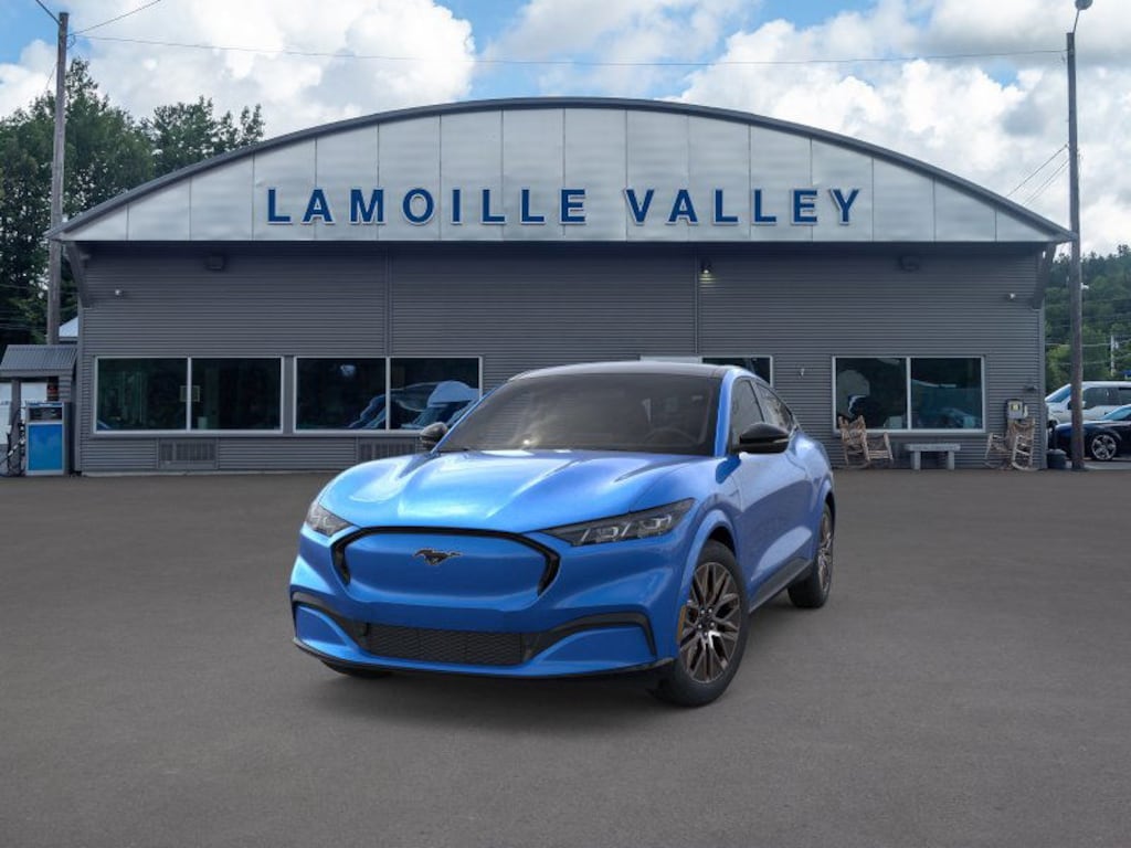 Lamoille Valley Ford is proud to present you with another True Market Priced Vehicle. This 2026 Ford Mustang Mach-E Premium is loaded with the following Factory Options: Equipment Group 300A Standard Package (Heated/Ventilated ActiveX Bucket Seats, Radio: B&O Sound System by Bang and Olufsen, SiriusXM with 360L, SYNC 4A with Enhanced Voice Recognition, and Wheels: 19" Bright Machined-Face Aluminum), Ford Connectivity Package (one-Time Purchase - 7 Years) (Audio and Video Streaming and Connected Navigation), Panoramic Fixed-Glass Roof Package, 10 Speakers, 4-Wheel Disc Brakes, ABS brakes, Air Conditioning, Alloy wheels, AM/FM radio: SiriusXM with 360L, Apple CarPlay/Android Auto, Auto High-beam Headlights, Auto-dimming Rear-View mirror, Automatic temperature control, Brake assist, Bumpers: body-color, Compass, Delay-off headlights, Driver door bin, Driver vanity mirror, Dual front impact airbags, Dual front side impact airbags, Electronic Stability Control, Emergency communication system: 911 Assist, Exterior Parking Camera Rear, Four wheel independent suspension, Front anti-roll bar, Front Bucket Seats, Front Center Armrest, Front dual zone A/C, Front License Plate Bracket, Front reading lights, Fully automatic headlights, Heated door mirrors, Heated front seats, Heated steering wheel, Illuminated entry, Knee airbag, Low tire pressure warning, Memory seat, Mobile Power Cord (120V/240V), NACS Fast Charging Adapter, Navigation system: Connected Navigation, Occupant sensing airbag, Outside temperature display, Overhead airbag, Overhead console, Panic alarm, Passenger door bin, Passenger vanity mirror, Power door mirrors, Power driver seat, Power passenger seat, Power steering, Power windows, Radio data system, Rain sensing wipers, Rear anti-roll bar, Rear seat center armrest, Rear side impact airbag, Rear window defroster, Rear window wiper, Remote keyless entry, Security system, Speed control, Speed-sensing steering, Speed-Sensitive Wipers, Split folding rear seat, Spoiler, Steering wheel mounted audio controls, Telescoping steering wheel, Tilt steering wheel, Tire Inflator and Sealant Kit, Traction control, Trip computer, Turn signal indicator mirrors, Variably intermittent wipers, Ventilated front seats, and Wheels: 19" Bright Aluminum with Sinister Bronze Pockets!! 103/94 City/Highway MPG